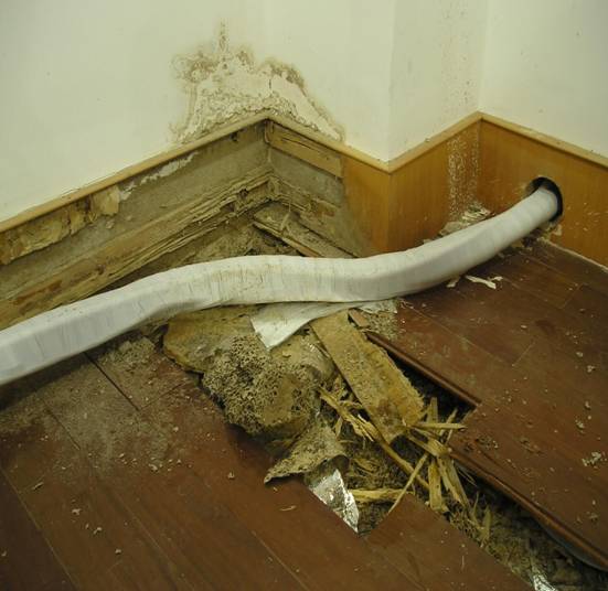 2、“蔓延”:白蟻為了取食,從地下土壤或沿著建筑物孔隙、管道等構(gòu)筑“蟻路”進入建筑物實施危害。